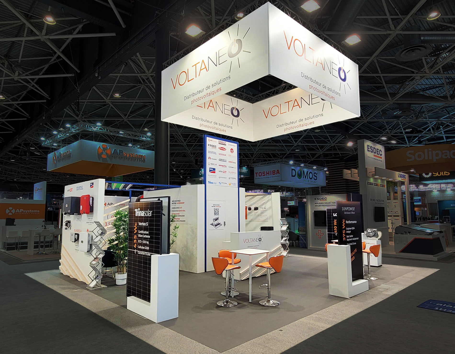 Dans cette optique, nous avons accompagné les enseignes BRISACH ( GL ), FINOPTIM (DP CONSEILS), AXDIS (PECHUP),VOLTANEO ( GL) en leur proposant des structures aluminium réutilisables modulables et des toiles imprimées recyclées.